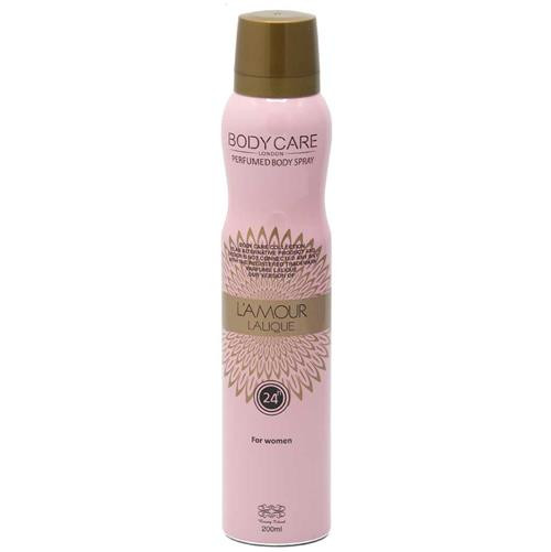این اسپری رایحه ملایم، شیرین و دلنشینی دارد، که با ماندگاری 24 ساعته بدن را تا مدت زیادی خوشبو نگه میدارد. ویژگی منحصر به فرد این اسپری ضد حساسیت و فاقد الکل بودن آن می باشد که به پوست آسیبی وارد نمی کند. اسپری بدن زنانه بادی کر مدل laliqe lamour برای استفاده روزانه بسیار مناسب می باشد که حس طروات و شادابی را به شما هدیه می دهد.