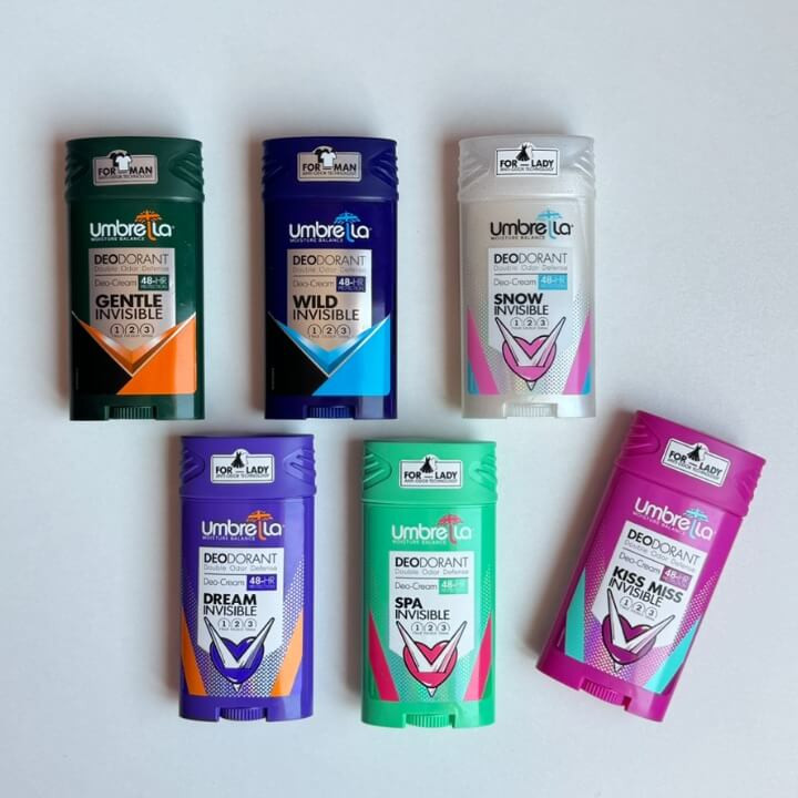 استیک های ضد تعریق آمبرلا به طور کلی از این ویژگی برخوردار هستند که در ترکیبات آن ها از آلومینیوم استفاده نشده است تا باعث ایجاد حساسیت بر روی پوست نشوند. همچنین مام های زیر بغل آمبرلا از جمله محصولاتی هستند که دارای ترکیبات مغذی برای پوست می باشند.